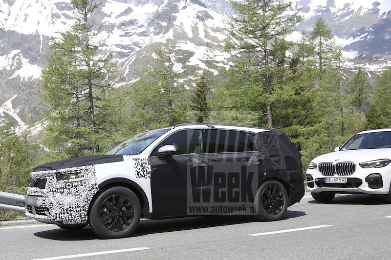 Dat doet de auto op de foto’s opvallend genoeg met een BMW X5 aan het sleepoog. Met de trek-kwaliteiten van de nieuwe Koreaan lijkt het dus wel goed te zitten, maar naar het uiterlijk is het nog grotendeels gissen. Wel is te zien dat het om een stoer model gaat met een hoge neus. Daarin zijn horizontaal georiënteerde koplampunits geplaatst, duidelijk anders dan de verticale exemplaren van de nog grotere Telluride.