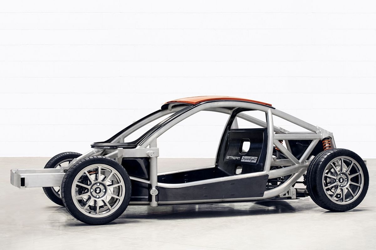 De Motiv maakt namelijk gebruik van een architectuur die Gordon Murray Design iStream doopt. Op bovenstaande foto zie je hoe de Motiv er onderhuids uitziet en daar is het nu dus om te doen. iStream is volgens Gordon Murray Design een architectuur die perfect kan zijn voor tal van voertuigen. Een lichtgewicht buizenframe vormt de basis, waar nodig versterkt met panelen van composietmaterialen van gerecyclede vezels (zoals op het voorbeeld op de foto hieronder te zien is).