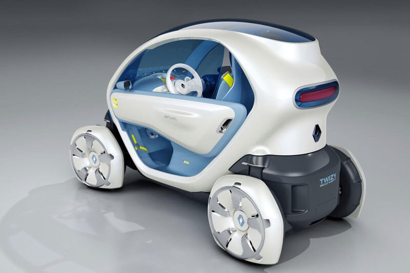 De kleinste van het kwartet elektrische IAA-Renaults is de Twizy Z.E. Concept. Deze rijdende cocon kan twee inzittenden in de stad van A naar B transporteren.