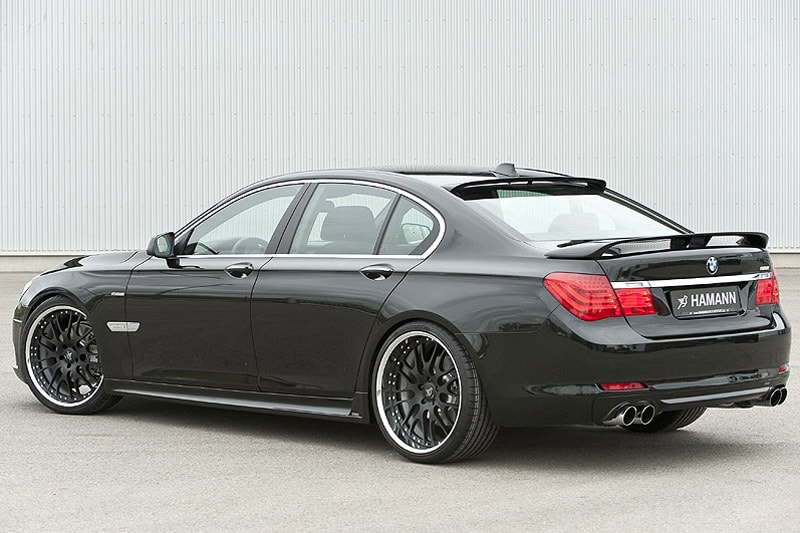 De 7-serie van Hamann onderscheidt zich allereerst door een uitgebreide bodykit. Vooral aan de achterkant hebben de aerodynamica-specialisten zich uitgeleefd, want daar vinden we zowel op het dak als op de kofferklep een spoiler. De tuner monteert verder dagrijverlichting en een uitlaatsysteem met vier verchroomde eindpijpen. Het speciale lichtmetaal van Hamann heeft naar wens een diameter tussen de 19 en 22 inch.