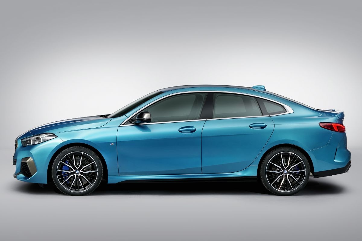 De nieuwe BMW 2-serie Gran Coupé laat zich omschrijven als het vierdeurs broertje van de 1-serie, maar wordt tegelijkertijd gepositioneerd als een even sportieve als modieuze vierdeurs coupé. De regelrechte CLA-concurrent onderstreept dat met stijlloze portierruiten, een kont naar voorbeeld van de 8-serie en een vloeiende, geleidelijk aflopende daklijn. Door de zeer vlak liggende achterruit en het opvallend forse vierde zijruitje in de C-stijl doet het silhouet van de auto wat denken aan dat van de 4-serie Gran Coupé. Ook wordt hiermee de indruk gewekt dat de 2-serie ‘GC’ net als z’n grotere broertje een vijfdeurs liftback is, maar niets blijkt minder waar: de achterruit van de kleinste Gran Coupé blijft onder alle omstandigheden op z’n plek.
