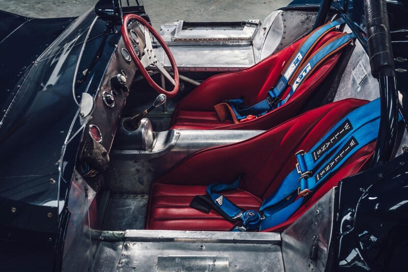 De Lotus XI als uitgekleed omschrijven, is dan ook een understatement van formaat. Kijk daarvoor maar naar de cockpit, die nauwelijks meer dan twee racekuipen en een flinterdun stuur bevat. De versnellingspook van de manuele vierbak is al even priegelig, terwijl het dashboard uit een karige mix van Smiths-tellers en verweerde knoppen bestaat. Al schuilt daar natuurlijk de schoonheid in. Alles wat op een Eleven zit, is functioneel, inclusief de metalen klepjes die de plastic zijruiten met de dito voorruit doen aansluiten. Instappen is, zoals nog steeds bij Lotussen, een oefening in lenigheid, temeer omdat de deurtjes gewoon naar beneden klappen om de dorpels van het chassis nog breder te doen lijken. Gewoon met je voet op de zitting van de stoel gaan staan is daarom de enige manier om erin te raken.