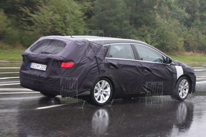 Nog eventjes en we moeten afscheid nemen van de Hyundai Sonata – de klinkende typeaanduiding loopt in Europa mee sinds 1989, maar moet worden aangepast aan de eisen van de tijd. De opvolger van de Sonata zal als i40 door het leven gaan. Het duurt nog wel eventjes voordat Hyundai zijn nieuwe model in het D-segment presenteert, maar we weten al wel dat de stationwagenversie eerder komt dan de sedan. Geen verrassing dus dat uitgerekend dié hier de bocht doorkomt. Goed om te weten dat het ook in Duitsland rotweer is – Hyundai zou vandaag beter een boot kunnen testen in de Eifel.