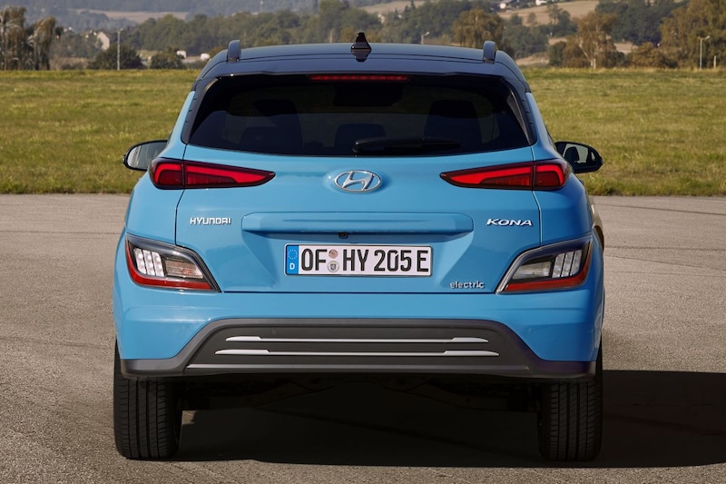 Hoewel Hyundai de Kona Electric op dezelfde manier facelift als de reguliere types, lijken de verschillen tussen de vernieuwde Kona Electric en het model van voor de facelift wellicht minder groot. Dat komt doordat de Kona Electric altijd al een afwijkend front zonder grote open grille had. Ook bij de Kona Electric verhuist het Hyundai-logo op de snuit een stuk omhoog, maar omdat het logo voorheen al hoger zat, lijkt het verschil minder groot. De Kona Electric krijgt dezelfde gewijzigde verlichting met nieuwe platte led-dagrijverlichting en een verdieping eronder de daadwerkelijke koplampen. Ook is de voorbumper van de Kona veranderd. Het open deel ervan groeit in zowel breedte als hoogte een maatje. Ook achterop zien we een andere bumper en aangepaste ledverlichting. De nieuwe bumpers maken de Kona Electric 4 centimeter langer dan voorheen