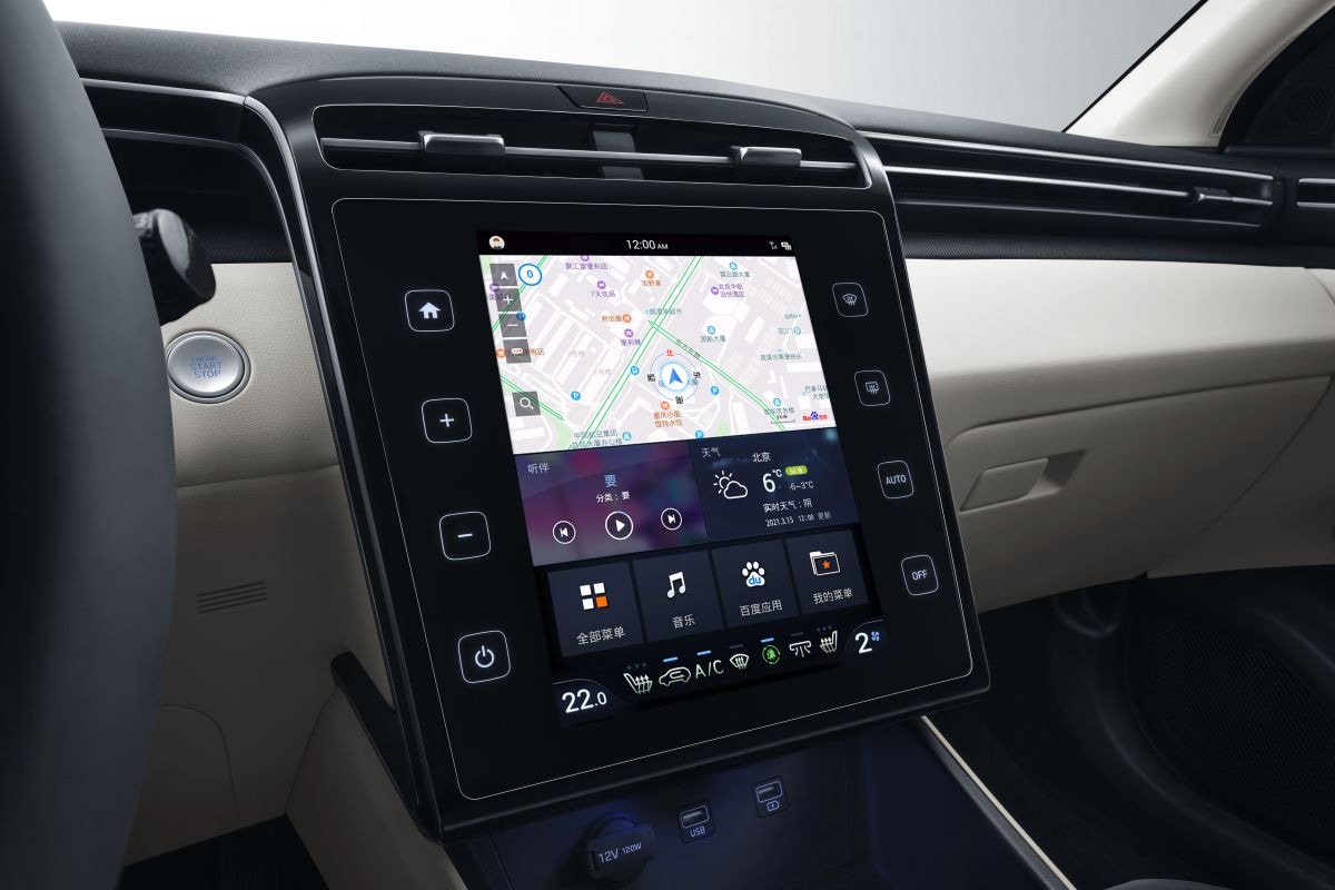 Wel wijkt de Chinese Tucson vanbinnen af van de Europese, Amerikaanse en Koreaanse versies. Zo heeft de Hyundai Tucson bij ons in de middenconsole een 10,25 inch groot horizontaal georiënteerd aanraakscherm met eronder aanraakgevoelige knoppen voor onder meer de klimaatregeling. In China is die unit compleet anders. Hyundai plaatst in de Chinese Tucson L een nieuwe systeem met een 10,4-inch groot scherm dat juist verticaal is geplaatst. Aan weerszijden ervan zitten een stek aanraakgevoelige snelkoppelingen. Het systeem draait in China op software van Baidu en is compleet anders dan in Europa.