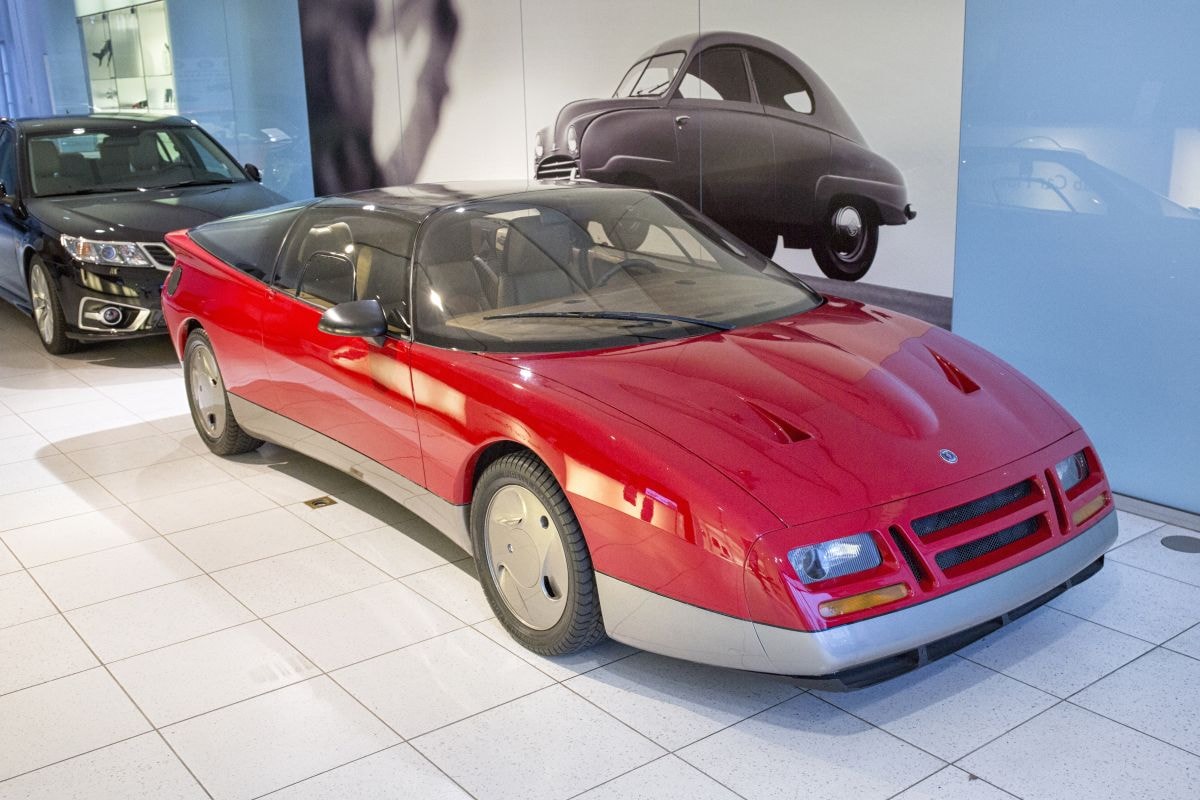 In 1985 bouwde Saab deze EV-1 concept-car, die – in tegenstelling tot wat de naam doet vermoeden – géén elektrische aandrijflijn heeft. Het is eigenlijk een 900 Turbo 16V met een ander koetswerk. De motor is opgepept tot 290 pk en geeft hem een topsnelheid van 270 km/h. De auto heeft een hele kleine rol in de film Back to the Future 2. In het dak zitten zonnecellen, die de stroom verzorgen voor de koeling van het interieur. Een detail dat later zou terugkeren in productie-Saabs is de uitschakelbare verlichting van het instrumentarium (‘Night panel’), waarbij alleen het relevante deel van de snelheidsmeter zichtbaar blijft.