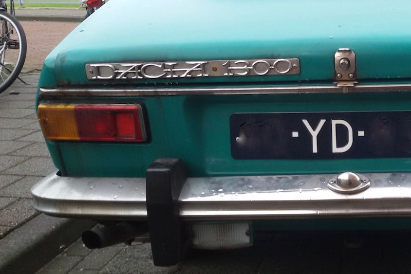 De groene Dacia 1300 zag in 1975 het levenslicht. De viercilinder benzinemotor perst er 54 pk's uit. Nog maar sinds kort verkent deze Dacia de Nederlandse wegen, want de huidige eigenaar haalde de sedan afgelopen november naar ons land. Hij koos (gelukkig) voor de blauwe kentekenplaten die op een oldtimer met deze leeftijd horen.