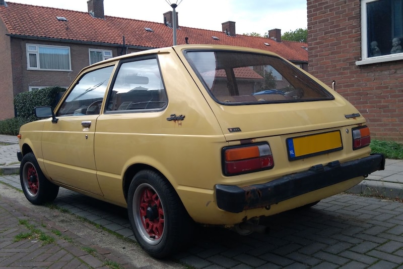 Het wordt niet helemaal helder wat er in het neusje van de Toyota ligt, maar deze Starlet was in ieder geval leverbaar met een 1.0, 1.2 en 1.3. Bescheiden maar voor hun tijd alleszins acceptabel krachtige motoren, waarvan het vermogen via de achterwielen op het asfalt overgebracht werd. Jazeker, achterwielaandrijving in een kleine auto was toen nog een ding. Het moet ongetwijfeld een bijzondere ervaring zijn om hier nog dagelijks mee de weg op te gaan. Het is alleen wel te hopen dat hij op den duur toch even goed onderhanden genomen wordt. Het lijkt er immers op dat de roestduivel er nu toch wel eng veel vat op krijgt.
