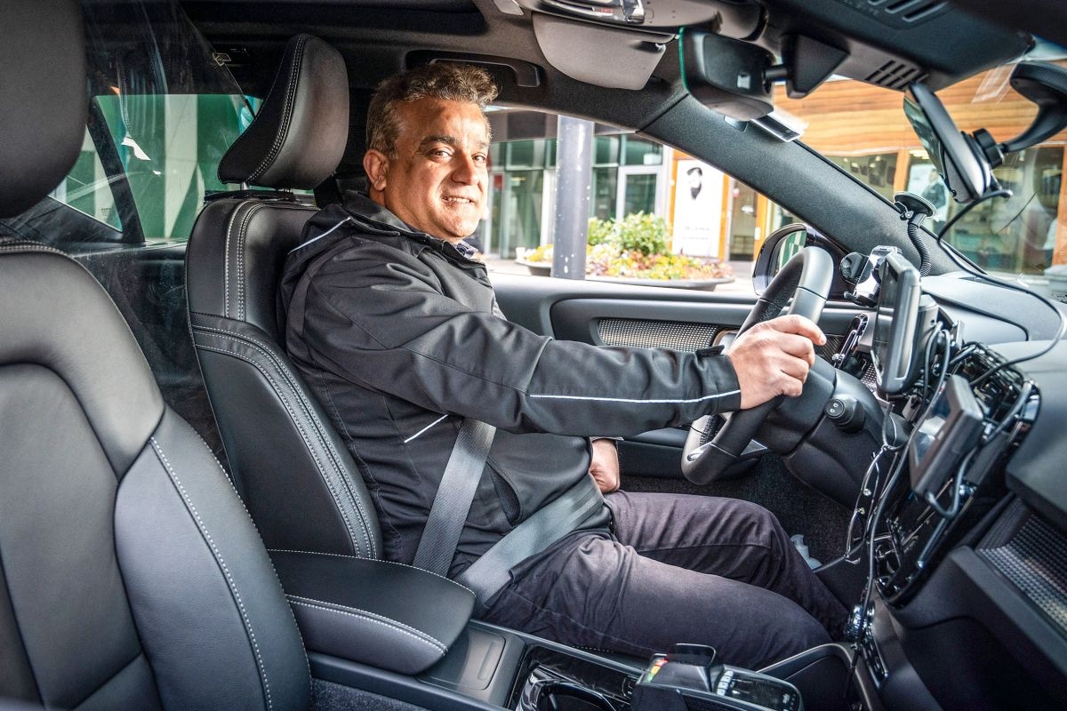 Taxichauffeur Alex Gonimar rolt zijn elektrische Volvo over de blauwe plaat die in de parkeerplaats is opgenomen. Het beeld van de 360-graden-camera laat hem precies zien waar hij moet stoppen. Dan begint het spektakel. Als bij toverslag zuigt zijn XC40 Recharge stroom uit de bodem: draadloos, met een vermogen van 40 kW. Inductief opladen is de naam van deze technologie. Het is bekend van mobiele telefoons, waarbij je de telefoon op een oplaadstation legt. Bij de Volvo werkt het geheel zelfs met een afstand van enkele centimeters tussen de auto en het wegdek. Alex Gonimar maakt deel uit van een groter geheel: dit is een praktijktest voor de stad van de toekomst.