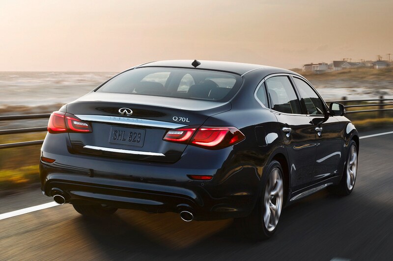 Zo komt de Q70 voortaan ook beschikbaar als Q70 L. Die versie heeft een 150 mm langere wielbasis en dat betekent volgens Infiniti de grootste ruimte voor achterpassagiers in dit segment. Deze versie lijkt overigens vooral voor China bedoeld, een land waar de autokoper extra ruimte voor de achterpassagiers zeer waardeert.