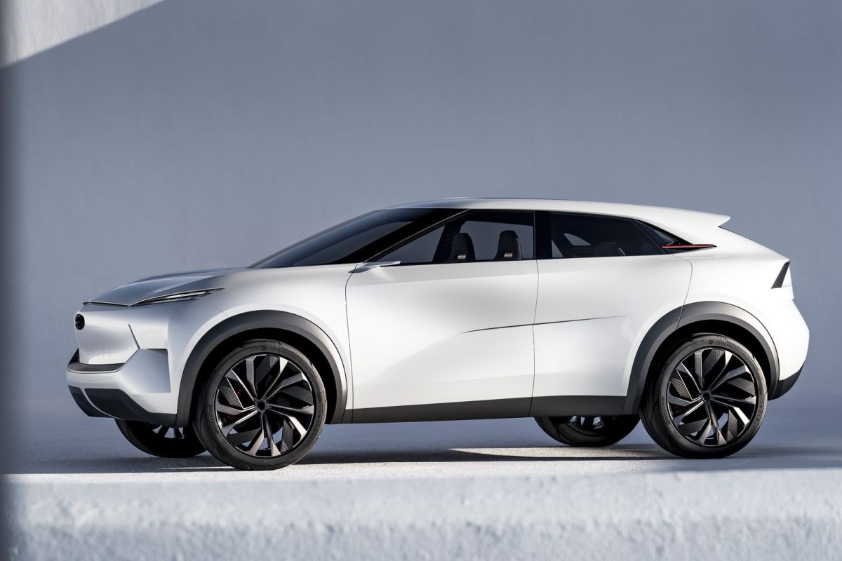 De Qs Inspiration is zowaar geen SUV, maar een sportieve sedan. Nog specialer is dat het woord ‘coupé’ in het gehele persbericht niet voorkomt en Infiniti ‘m dus echt gewoon ‘sedan’ noemt. Dat zien we tegenwoordig nog maar zelden. Ook opvallend: het zou gaan om een auto met een geëlektrificeerde aandrijflijn, wat impliceert dat er nog altijd een verbrandingsmotor aanwezig is. De auto staat op een geheel nieuw platform dat bij uitstek geschikt moet zijn voor het onderbrengen van allerhande deels of geheel elektrische aandrijflijnen.