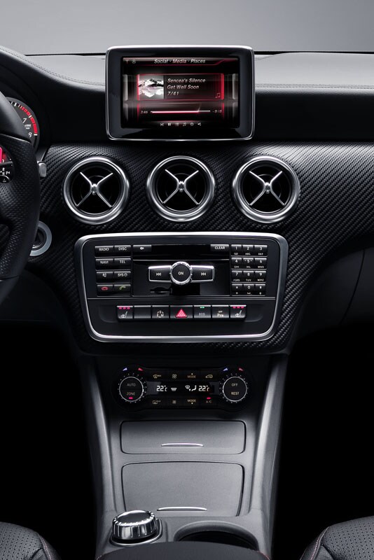 Door de door Mercedes-Benz zelf ontwikkelde "Digital DriveStyle App" en de „Drive Kit Plus" kunnen alle functies van de iPhone via het multimediasysteem van de A-klasse worden bediend. De bestuurder kan met het knoppencluster in de middenconsole bladeren door de menu's. Mercedes-Benz claimt dat de A-klasse de eerste auto is die zo'n verregaande integratie met de iPhone mogelijk maakt. Later dit jaar komt deze iPhone-connectiviteit ook beschikbaar voor de B-, C- en E-klasse.