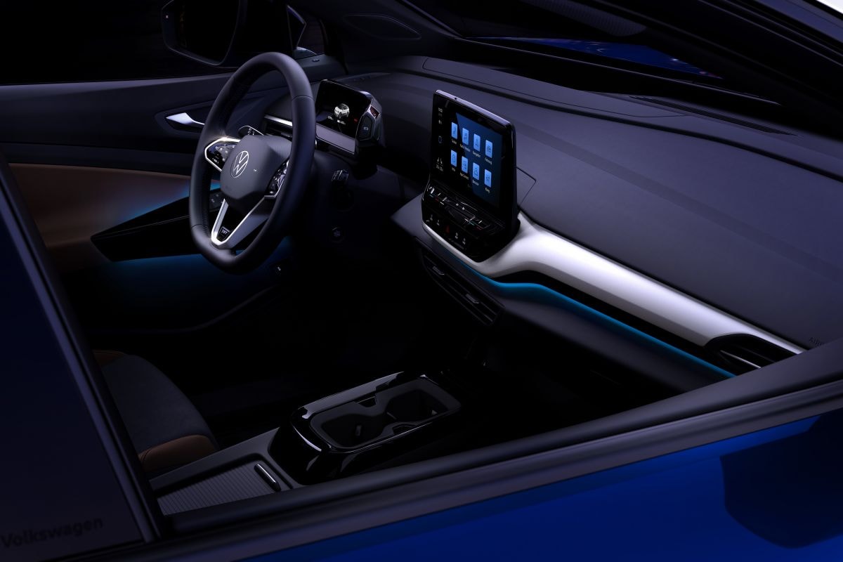 Eerlijk is eerlijk: het binnenste van de ID4 zorgt nauwelijks voor verrassingen. Uiteraard lijkt het geheel op dat van de Enyaq van Skoda, al vertoont het interieur van de elektrische SUV nog meer overeenkomsten met dat van de ID3. Waar de Enyaq namelijk fysieke knoppen onder de ventilatieroosters in de middenconsole heeft, heeft de ID4 net als de ID3 aanraakgevoelige knoppen en 'sliders' direct onder het infotainmentscherm. Volkswagen geeft al vrij dat de bagageruimte van de ID4 543 liter groot is. Dat is fors meer dan de 385 liter die de ID3 opslokt, maar wel iets minder dan de 585 liter waar zijn Tsjechische evenknie plek aan biedt. Sfeerverlichting met in totaal 30 instelbare kleuren moet het interieur kunnen opfleuren.