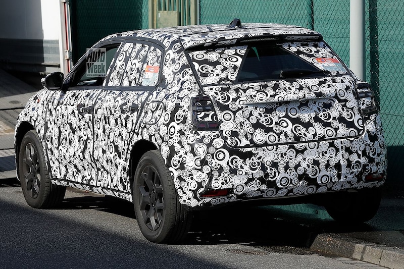 Eerder dit jaar gaf Fiat aan dat het dit jaar niet één, maar twee volledig nieuwe elektrische modellen presenteert. Van een van die twee nieuwkomers kunnen we je vandaag al de eerste foto's laten zien. Op die platen is een met psychedelisch camouflagemateriaal ingepakt testmodel te zien dat overduidelijk een compacte cross-over is waar Fiat de nodige designelementen van de 500's overheen heeft uitgestort. Door het stickerwerk zijn de contouren van de ronde koplampen al zichtbaar en de volledige achterzijde doet denken aan die van modellen uit de 500-familie. Kijk maar eens naar de achterlichten en het 'luifeltje' boven waar de kentekenplaat een plekje krijgt.