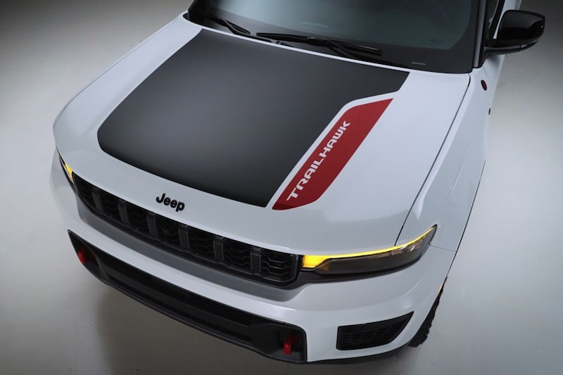 De Jeep Grand Cherokee krijgt een licht herzien front. De koplampen behouden hun vorm, maar krijgen een andere indeling. De led-dagrijverlichting zit opnieuw boven de unit, al kent hij voortaan een uitlopertje dat optisch richting de grille duikt. Die grille zelf heeft uiteraard weer de Jeeps-kenmerkende zeven segmenten, al is de uitwerking ervan ditmaal anders. Het geheel is nu volledig in het zwart uitgevoerd, de segmenten ontstaan daarbij door een zestal zwarte kunststof elementen. Geen facelift zonder gewijzigd bumperwerk en dus nemen we zowel voor als achter subtiel vernieuwde exemplaren waar.