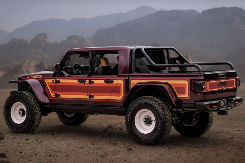Tijdens Easter Jeep Safari 2019 presenteerde Jeep al de J6, een tweedeurs pick-up die gebaseerd was op de vierdeurs Gladiator. Voor de nieuwste editie van het evenement haalt Jeep de conceptauto weer van stal, maar deze keer met graphics die weer terugverwijzen naar de Jeep Honcho uit de jaren 70. Door het inkorten van de passagiersruimte is de laadbak van deze J6 overigens 30 centimeter langer dan bij de Gladiator het geval is.