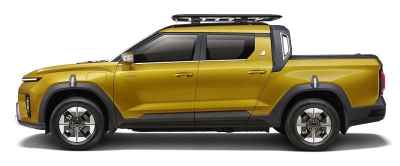 KGM verkoopt in Nederland momenteel één model: de volledig elektrische Torres EVX. De Torres – die er buiten Nederland ook met verbrandingsmotoren en straks zelfs als hybride is – heeft in onder meer thuisland Zuid-Korea al een zustermodel waar KGM een van SsangYong bekende modelnaam op heeft geplakt: de Actyon. Het KGM-gamma wordt nu uitgebreid met weer een nieuw model en ook dat draagt een bekende naam. Dit is de KGM Musso EV. De KGM Musso EV is – zijn naam geeft het al weg – helemaal elektrisch en is feitelijk de pick-upversie van de Torres EVX. Het is een relatief compacte pick-up met dubbele cabine en een relatief korte laadbak. Wat concept betreft komt de auto daarmee overeen met in Nederland niet leverbare auto's als de Hyundai Santa Cruz, Ford Maverick en Fiat Toro, maar dan dus met een elektrische aandrijflijn.