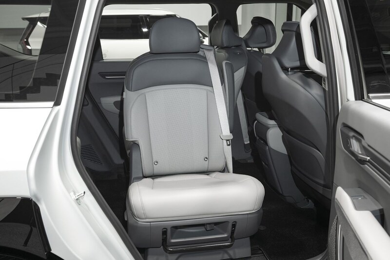 We zien in de EV9 maar liefst drie displays die samen zijn ondergebracht in één paneel. Tussen het 12,3-inch digitale instrumentarium en het even grote infotainmentscherm zit een derde display waarop je informatie en instellingen over de klimaatregeling vindt. De belangrijkste functies daarvan stuur je gewoon via fysieke knoppen in de onderste laag van het dashboard aan. Wel zo handig. Ook handig: het meubilair. De EV9 heeft op de tweede zitrij afhankelijk van de uitvoering een achterbank of twee losse stoelen. In dat laatste geval kun je de stoelen in de GT-Line desgewenst 180 graden draaien zodat je je vrienden, familieleden of collega’s op de derde zitrij – die daar met een lengte van 1,80 zeker prima zitten – kunt aankijken. Gezellig.