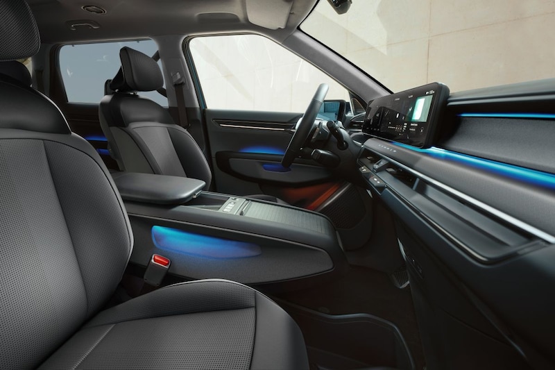 Uiteraard lever je ten opzichte van die twee wel aan uitrusting in. De Kia EV9 Air is echter alles behalve 'kaal', ook al is het voorlopig de instapper. 19 inch lichtmetalen wielen, privacy glass, het 29,6 inch scherm met navigatiesysteem en Kia Connect, een 360 graden-camera, elektrisch bedienbare voorstoelen en stoelverwarming en -ventilatie voor de voorstoelen en tweede zitrij: het is er allemaal bij. Qua kleur in het interieur is er de keuze uit donkergrijs met zwart, of lichtgrijs met donkergrijze accenten. Net als bij de Launch Editions zijn de stoelen deels bekleed met veganleer. Bestellen van de Kia EV9 Air kan per direct.