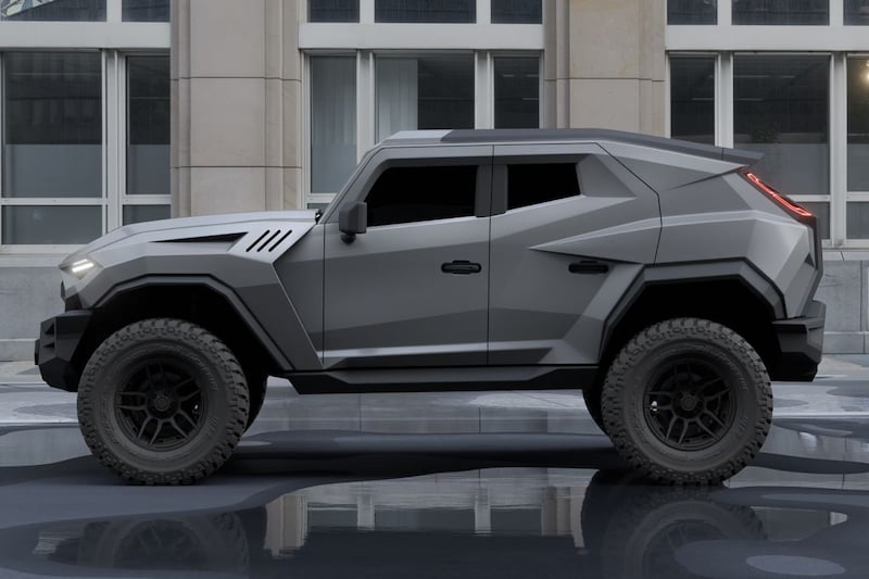 Net als vrijwel alle andere modellen van Rezvani lijkt ook de Tank weggereden uit een tijdlijn waarin de zaakjes net even minder prettig dan gewenst verlopen. De opnieuw op de Jeep Wrangler gebaseerde derde generatie Rezvani Tank heeft een uitermate hoekig uiterlijk, dat bijna doet vermoeden dat de computer waarop het is getekend te weinig rekenkracht had om meer dan een handjevol polygonen op het scherm te toveren. Lekker stealthy, zal Rezvani ongetwijfeld vinden. Het gevaarte heeft speciale offroadophanging, staat op 37 of 39 inch offroadrubber, heeft extra potente remmerij en staat naar wens 10 of 15 centimeter hoger op zijn poten dan een reguliere Wrangler.