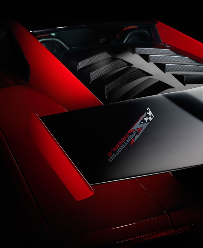 De Lamborghini Blancpain Super Trofeo raceklasse is de grootste klasse waarin met slechts één model wordt geracet. Die circuitauto is nu ook te koop met straattoelating. Lamborghini bouwt er slechts 150. De 570 pk sterke V10 wordt zonder modificaties overgenomen en je herkent 'm natuurlijk meteen aan de enorme (verstelbare) achterspoiler, die ons doet mijmeren over de goeie ouwe Countach en is afgewerkt in hoogglans zwart. Die kleur kan als optie ook op het dak worden toegepast. De krachtbron is overigens gekoppeld aan de zestraps e-gear-transmissie.