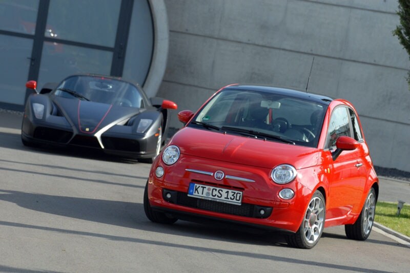 Alle dertig Ferrari-partners in Duitsland hebben speciale mede door Ferrari ontwikkelde Fiat 500 ingezet als leenauto. Het is natuurlijk nogal een overgang, maar om het leed te verzachten is de speciale 500 in elk geval in het beroemde Rosso Ferrari uitgevoerd. Ook ligt deze 500 wat lager dan een standaard exemplaar en 16 inch wielen, speciale rode remklauwtjes en een uitlaat met een indrukwekkend geluid. Binnenin is het leder wat de klok slaat en verder zijn er sportpedalen en een lederen stuurwiel met rood stiksel. De Ferrari –bezitters hebben maar de beschikking over 100 pk.