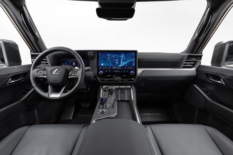 Het interieur van de nieuwe Lexus, met 14-inch infotainmentscherm.