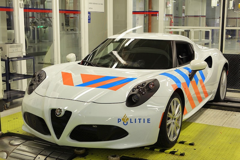 Ook binnen de landsgrenzen worden grappen bedacht. Alfa Romeo Nederland meldt namelijk 'met gepaste trots dat het tien 4C's aan het Korps Landelijke Politiediensten' heeft geleverd. Het bericht wordt vergezeld door een afbeelding van een 4C op de rollenbank; wellicht verzorgt de Alfa-importeur ook chiptuning voor de Italiaan.