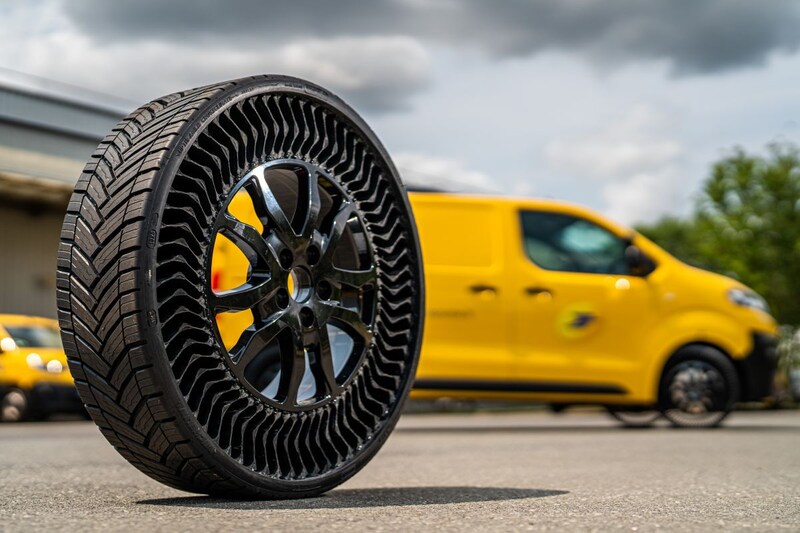 De tijd van geregeld de bandenspanning van je auto checken is voorbij. Althans, als je een Citroën Jumpy rijdt én bij het Franse postbedrijf La Poste werkt. La Poste neemt namelijk een vloot auto's met luchtloze banden van Michelin in gebruik.
