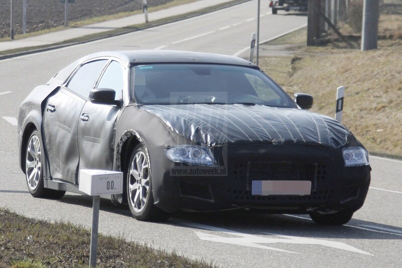 Maserati reed voorheen met mules (prototypes van de nieuwe Quattroporte vermomd als oude exemplaren) van de auto, maar inmiddels stuurt het merk de chique sedan met z'n daadwerkelijke carrosserie op pad, maar nog wel met flink wat camouflage eroverheen.
