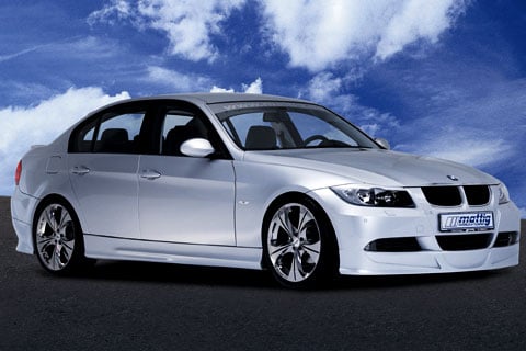 Een groot aantal componenten van het exterieur zijn vervangen door exemplaren van Mattig. De voorspoiler, de koplampen, de achterlichten, de achterspoiler, je kunt het zo gek niet bedenken of Mattig heeft er wel een eigen versie voor. De nieuwe 3-serie kan door andere schokbrekers vóór 40 mm en achter 20 mm worden verlaagd. In combinatie met speciale 19-inch lichtmetalen wielen moet dat een beter contact met het wegdek opleveren. Een dubbele uitlaat siert de kont van deze opgedirkte Dreier. Een achterspoiler en verdere verfraaiingen aan in- en exterieur komen volgens Mattig in de loop van dit jaar.