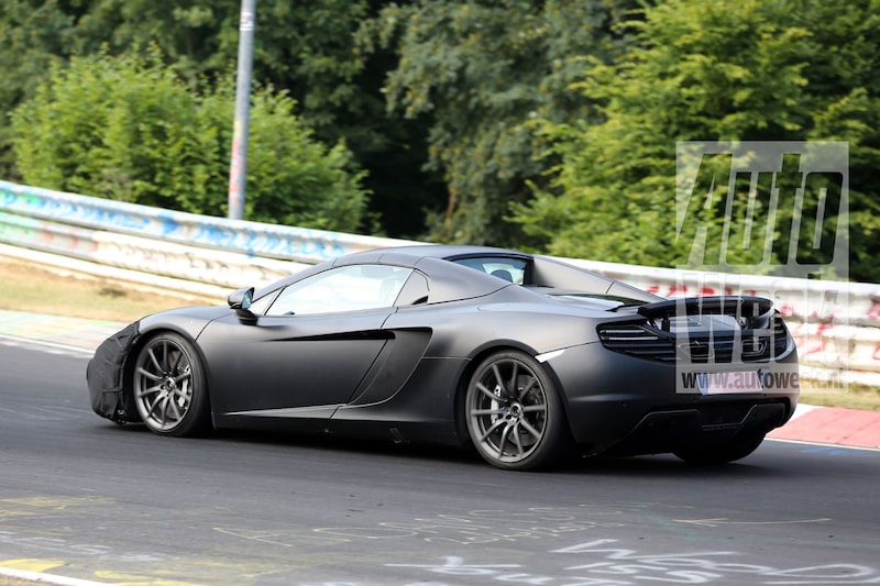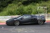 De matzwarte McLaren op deze foto's heeft een afgeplakte voorbumper, wat er uiteraard op duidt dat-ie subtiel anders getekend zal worden. Ook de lampen zijn bedekt, naar wat zich hieronder schuilhoudt kunnen we slechts gissen. Vorig jaar rond deze tijd werd de MP4-12C aangescherpt om z'n concurrenten bij te kunnen blijven bijbenen. Het vermogen steeg toen met 25 pk naar 625 pk. Daarnaast werd de transmissie aangepast voor een betere gasrespons. Het is niet ondenkbaar dat de McLaren van het volgende modeljaar ook weer een kleine testosteronkuur krijgt.