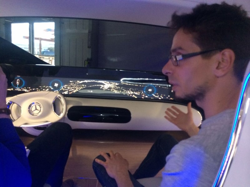 Het research & development team van Mercedes-Benz heeft zich compleet uitgeleefd op haar auto van de toekomst. De F015 - zie het als de S-klasse van het jaar 2030 - is een auto die volledig zelfstandig kan rijden en de mogelijkheid biedt om de twee voorstoelen om te draaien, zodat je tijdens je reis met hele andere dingen bezig kunt zijn dan met autorijden. Een kaartje leggen met je vrienden bijvoorbeeld, of een zakenoverleg terwijl je naar kantoor rijdt. Terwijl de auto zorgt dat je veilig op je bestemming aan komt, ben jij dus eigenlijk vooral de passagier van je eigen auto. Het is een surrealistische ervaring om - als in een trein - met je rug in de rijrichting te zitten, maar tijdens de test op de voormalige Alameda Naval Base nabij San Francisco legt de F015 keer op keer zonder enige problemen compleet zelfstandig zijn route af.