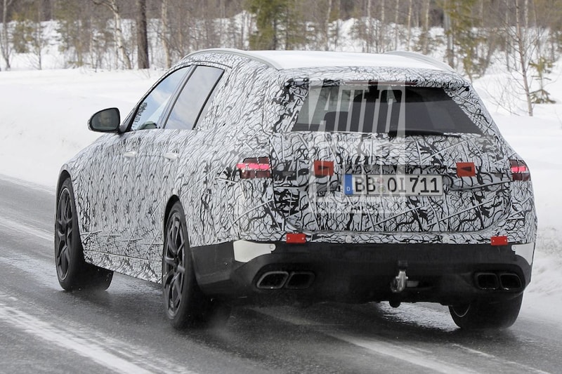 Toegegeven, heel veel fantasie is er niet meer voor nodig om de C 63 Estate voor te kunnen stellen zonder camouflage. Hij is nog behoorlijk goed ingepakt tijdens de wintertest in Scandinavië, maar de bredere wielkasten en diffuser met vier uitlaatpijpen laten zich moeilijk verhullen. Ook tekenen de contouren van de grote ventilatieroosters in de voorbumper zich af in de camouflage en beschikt de dikste C Estate over de kenmerkende Panamericana-grille met verticale spijlen. Verder zijn de voorwielen van het testmodel ook terug te vinden op andere AMG-modellen, wat een goede indicatie geeft van hoe de opperstation er straks mogelijk uit gaat zien op het schoeisel.