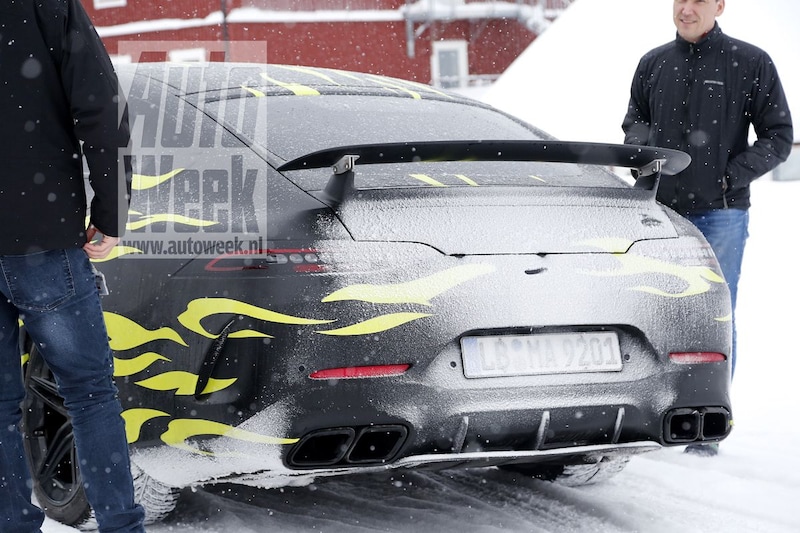Tijdens de Autosalon van Genève presenteert Mercedes-AMG de GT Coupé. Op deze spionagefoto's is de auto praktisch helemaal te zien.