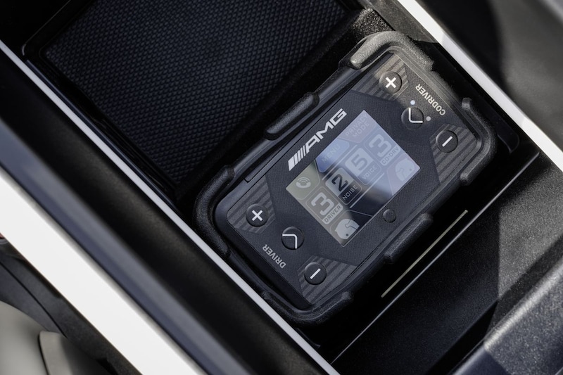 Wie zijn Mercedes-AMG PureSpeed in de regen parkeert, hoeft niet te vrezen voor een kletsnat interieur. De auto wordt namelijk geleverd met een beschermhoes die je over de carrosserie kunt spannen. Ook hoort een beschermhoes om de auto in je garage tegen stof en krassen te beschermen bij het PureSpeed-feestje.