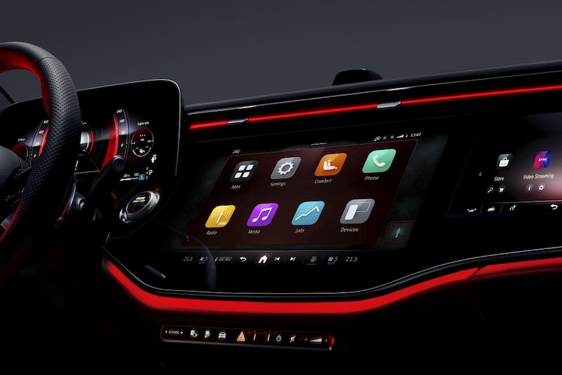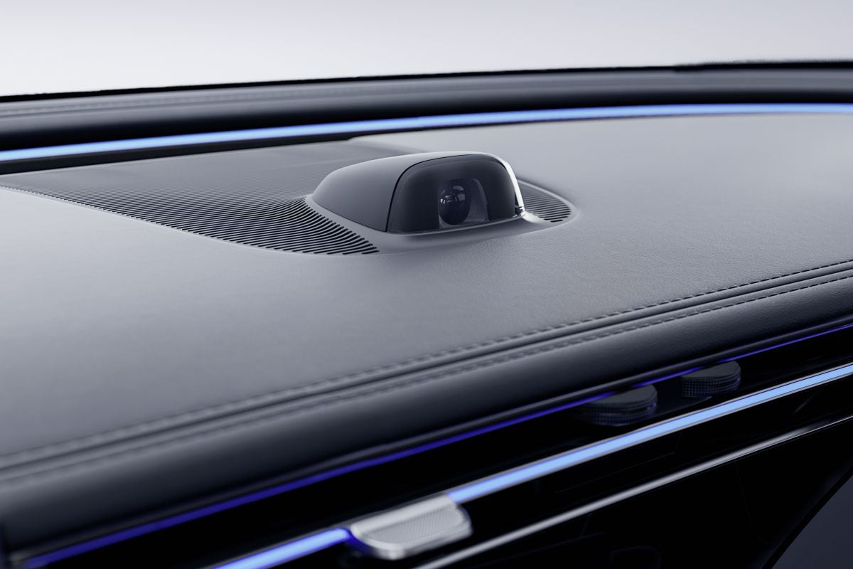 Verder zien we een camera midden op het dashboard. Die kun je gebruiken om selfies te maken, maar tevens voor Zoom-metings. Inderdaad, ook Zoom maakt deel uit van het de geïnstalleerde apps, net als Spottify, Amazon Music, Tidal en Apple Music. Alles bij elkaar is de nieuwe E-klasse zijn elektrische broer - de EQE - net weer een stapje voor.