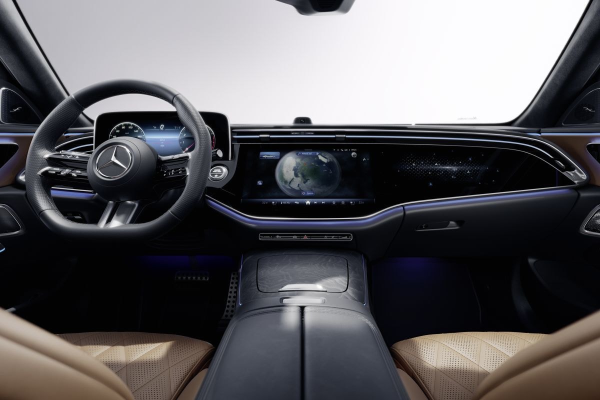 Vanbuiten is de nieuwe Mercedes-Benz E-klasse nog altijd direct te herkennen aan zijn klassieke sedan-vorm. Maar onderhuids is hij volledig nieuw. De Benz zit vol nieuwe systemen die het verblijf in de auto nog aangenamer en vooral veiliger moeten maken. De hiervoor benodigde elektronische architectuur is daarom helemaal op zijn kop gezet. Voor functies waarvoor eerder verschillende computers nodig waren, komt nu slechts één enkele processor tot inzet. Neem bijvoorbeeld de beeldschermen en het MBUX infotainmentsysteem, die draaien nu op één centrale, beduidend krachtigere computer. Hierdoor nemen de netwerk prestaties en vooral de snelheid van de datastroom toe, zowel binnen de auto als ook die naar buiten toe.