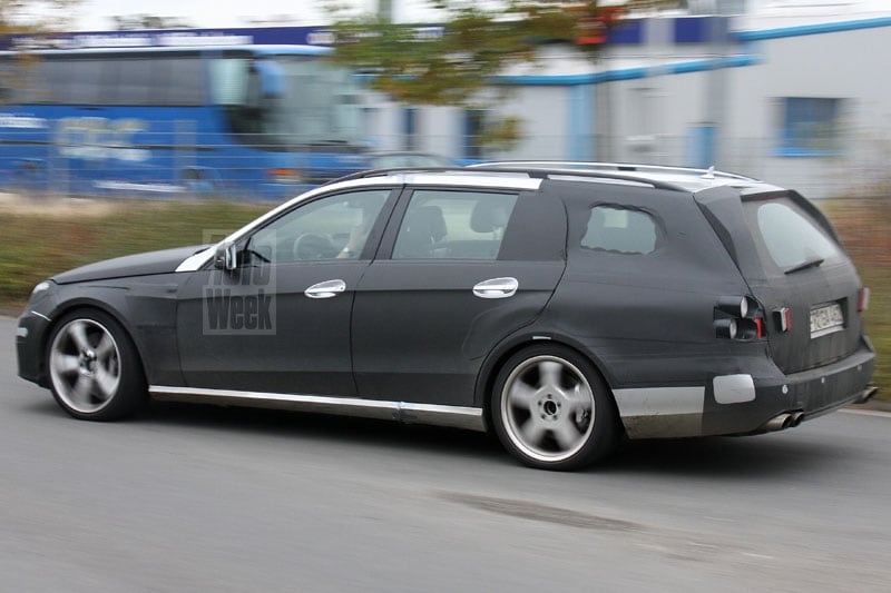 Natuurlijk krijgt de krachtigste E-klasse weer de 6,2-liter V8. Dat blok, wat overigens als een 6.3 wordt aangeduid, is de AMG-motor die je in bijna alle modellen terugvindt. Een ongeblazen machine die van veel toeren houdt en daarbij machtig klinkt. Ook de toekomstige E 63 AMG Combi heeft weer vier stortkokers die de klanken naar buiten brengen. Dit testexemplaar heeft verschillende wielen voor en achter. Het blijft een verrassing hoeveel vermogen de jongens van Mercedes AMG dit keer uit het blok toveren. In de huidige E 63 AMG schopt de achtpitter het tot 514 pk, maar in de SL 63 AMG zijn het 525 paardenkrachten die de '6.3' produceert. De 580 pk van concurrent Audi RS6 zullen in elk geval niet gehaald worden met de ongeblazen motor. Het lijkt erop dat de pk-strijd ten einde komt.
