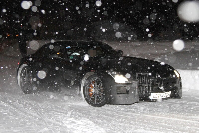 Mercedes SLS AMG Black Series speelt in de sneeuw