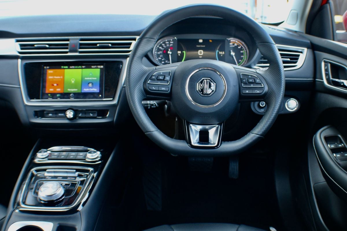 Voor foto's van het interieur zijn we op het moment van schrijven nog even aangewezen op beeld van de Britse MG 5. Dat geeft een goed beeld van wat je ongeveer kunt verwachten. Het ziet er conventioneel doch prima uit. Centraal in het dashboard tref je een infotainmentsysteem dat we al kennen van de ZS EV en EHS, dat ook overweg kan met Android Auto en Apple CarPlay. Voor het stuur zit een deels digitaal instrumentarium. Tot hoe groot het infotainmentscherm in de opgefriste MG 5 leverbaar wordt, is nog even afwachten. Tot op heden was het 8-inch groot, maar waarschijnlijk groeit het naar 10,1-inch (zoals in de ZS EV) nu de auto nog eens tegen het licht is gehouden. MG zegt op een later moment meer details van de 5 Electric vrij te geven. In China is de Roewe i5, de auto waar de MG 5 in zekere zin op is gebaseerd, recentelijk ook vernieuwd. Kijk niet gek op als MG het binnenste van die auto ook in de MG 5 Electric vouwt.
