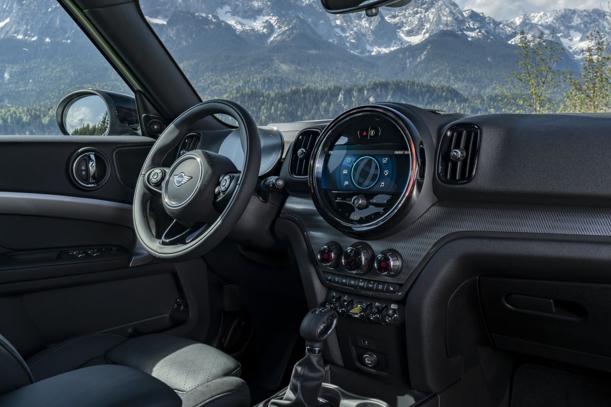 Voor de binnenkant heeft Mini minder primeurs klaarliggen. Naast wat nieuwe leersoorten en andere afwerkingsmaterialen krijgt elke Countryman voortaan standaard een met leer bekleed sportstuur en plaatst Mini optioneel een 5-inch digitaal instrumentarium achter dat stuurwiel in plaats van de oude bekende ronde meters.