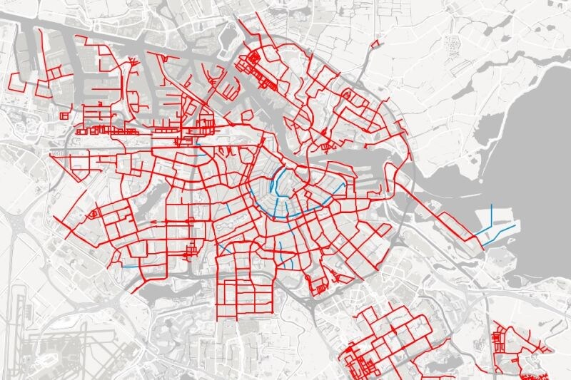 Morgen, vrijdag 8 december, is het zo ver. Dan gaat in een groot deel van Amsterdam de maximumsnelheid omlaag naar 30 km/h. De verlaging van de maximumsnelheid geldt op 80 procent van de wegen in Amsterdam. In totaal gaat het om 270 kilometer aan autoweg. Op foto 2 zie je de huidige situatie (blauw is 30 km/h), op foto 3 de nieuwe situatie. De belangrijkste reden voor de verlaging is volgens de gemeente het vergroten van de verkeersveiligheid en het terugdringen van geluidsoverlast.