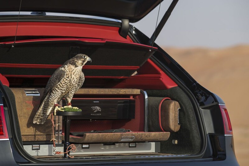 De 'Falconry-kit' bestaat uit twee opslagdozen van natuurlijke kurk die in de bagageruimte van de Bentayga zijn geplaatst. De lades in deze dozen zijn voorzien van alle denkbare valkeniersattributen. Zaken als de leren maskers voor de ongetwijfeld prijzige valk - sommige exemplaren zijn ruim een miljoen dollar waard - zijn met de hand gemaakt.