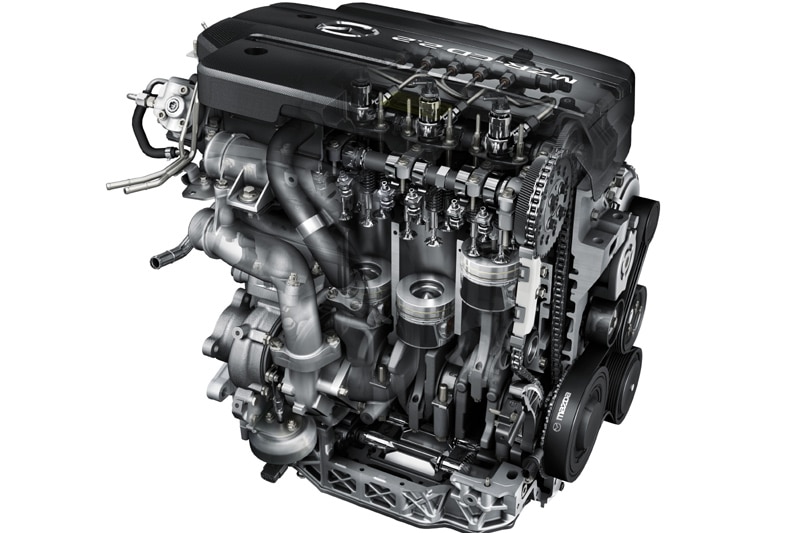 Ten opzichte van de 2.0 CiTD is de 2.2 CiTD voorzien van een langere slag, en de nieuwe motor heeft een balansas. Ook het verbeterde commonrailsysteem met een hogere inspuitdruk zorgt ervoor dat er uit de viercilinderdiesel vermogens tot 185 pk en een trekkracht tot 400 Nm komen. Mazda levert het blok in drie vermogensvarianten, maar de standaardversie met 125 pk komt niet naar ons land. Daarvoor in de plaats blijft de 'oude' 2.0 CiTD leverbaar die met 140 pk wat vermogen betreft nog prima meekan. Hoe de nieuwe 2.2 diesels rijden leest u volgende week in AutoWeek. In het voorjaar worden de 2.2 CiTD Mid Power en de 2.2 CiTD High Power in Nederland leverbaar.