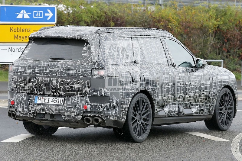 De rest van de carrosserie is wel anders en vooral een stuk strakker dan de X7 die in de basis uit 2018 stamt en in 2022 zijn huidige, opmerkelijke voorzijde kreeg. Concreet kijken we hier trouwens naar een M Sport-model, dat ongetwijfeld M60 (zonder ‘i’) gaat heten en tenminste in bepaalde werelddelen een V8 onder de kap krijgt. En vier gigantische uitlaateindstukken onder de achterbumper, zoals dit prototype duidelijk laat zien.