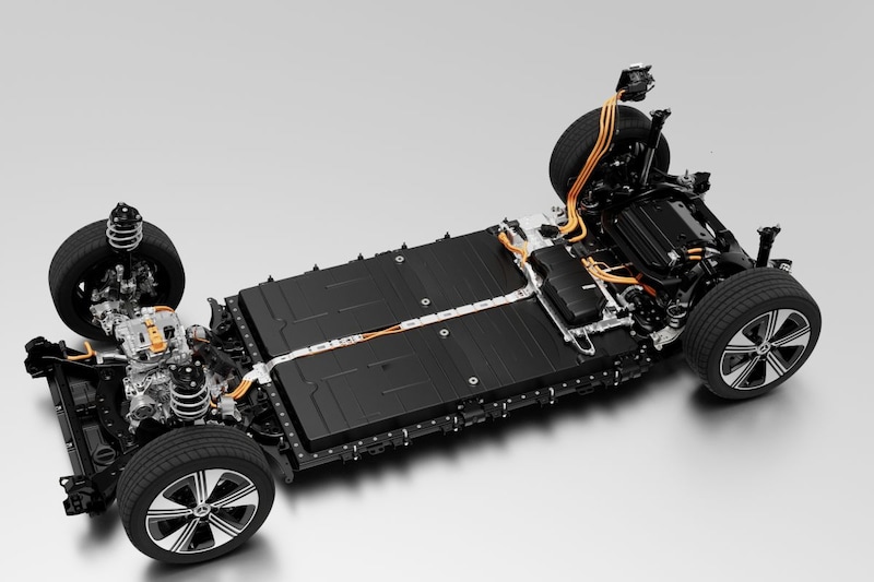 Er komen twee accu’s beschikbaar, beide lithium-ion. De start is met een bekende NMC-accu met 85 kWh, waarbij er siliciumoxide is toegevoegd aan het grafiet van de anode. Vergeleken met de vorige accu met conventionele grafietanodes is de energiedichtheid tot twintig procent hoger, claimt Mercedes. Ook is het aandeel kobalt is verlaagd.