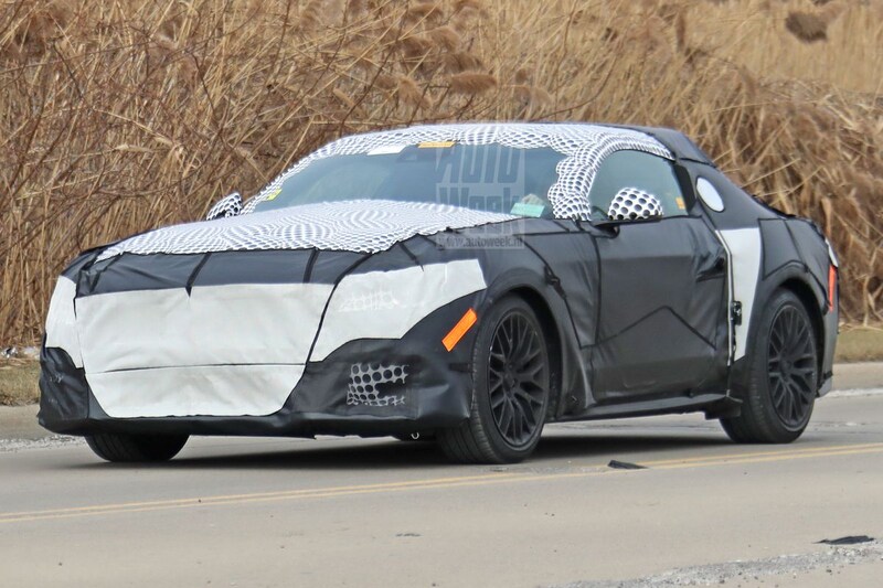 Zoals te verwachten was in dit stadium van het testwerk, houdt Ford de details angstvallig verborgen onder een dikke camouflagejas. Toch is duidelijk te zien dat de volgende Mustang gewoon de retro-lijn voortzet die we al sinds 2005 kennen. Je hoeft je waarschijnlijk geen zorgen te maken dat de volgende Mustang wat dat betreft breekt met het verleden. Wel lijkt het alsof hij een slagje groeit, al is dat nog wat lastig hard te maken.