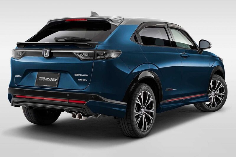 Mugen, opgericht door de zoon van Honda-oprichter Soichiro Honda, hangt de Vezel/HR-V vol met speciaal lichtmetaal, aangepaste spiegelkappen, rode biesjes, windschermpjes voor de zijruiten. Natuurlijk hoort ook aangepast bumperwerk - in diverse smaken beschikbaar - bij het Mugen-feestje. De HR-V is zelfs verkrijgbaar met een een extra achterspoiler die niet bovenaan, maar onderaan de achterruit een plek krijgt. Sideskirts? Van de partij, hetzelfde geldt voor speciale inzetstukken in de grille en natuurlijk kunnen zaken als Mugen-vloermatten en een reeks Mugen-logootjes niet ontbreken.