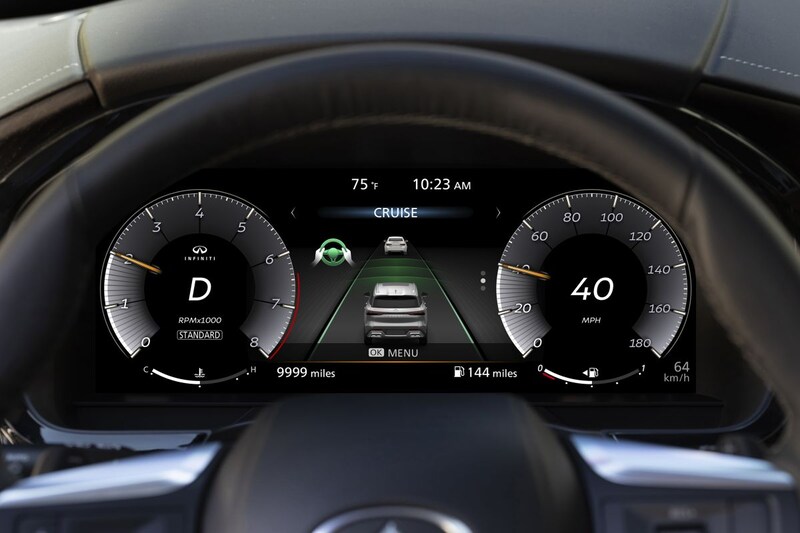 Infiniti meldt dat het de QX60 onder meer volpropt met ProPilot Assist, een semi-autonoom rijsysteem dat we in Nederland van de Nissan Qashqai kennen. Voor de QX60 nieuw, maar tegenwoordig niet bijster indrukwekkend zijn onder meer verkeersbordherkenning en een head-up display. De verkeersbordherkenning is gekoppeld aan de cruisecontrole en dat betekent dat de QX60 zijn snelheid automatisch kan aanpassen aan de geldende maximumsnelheid.